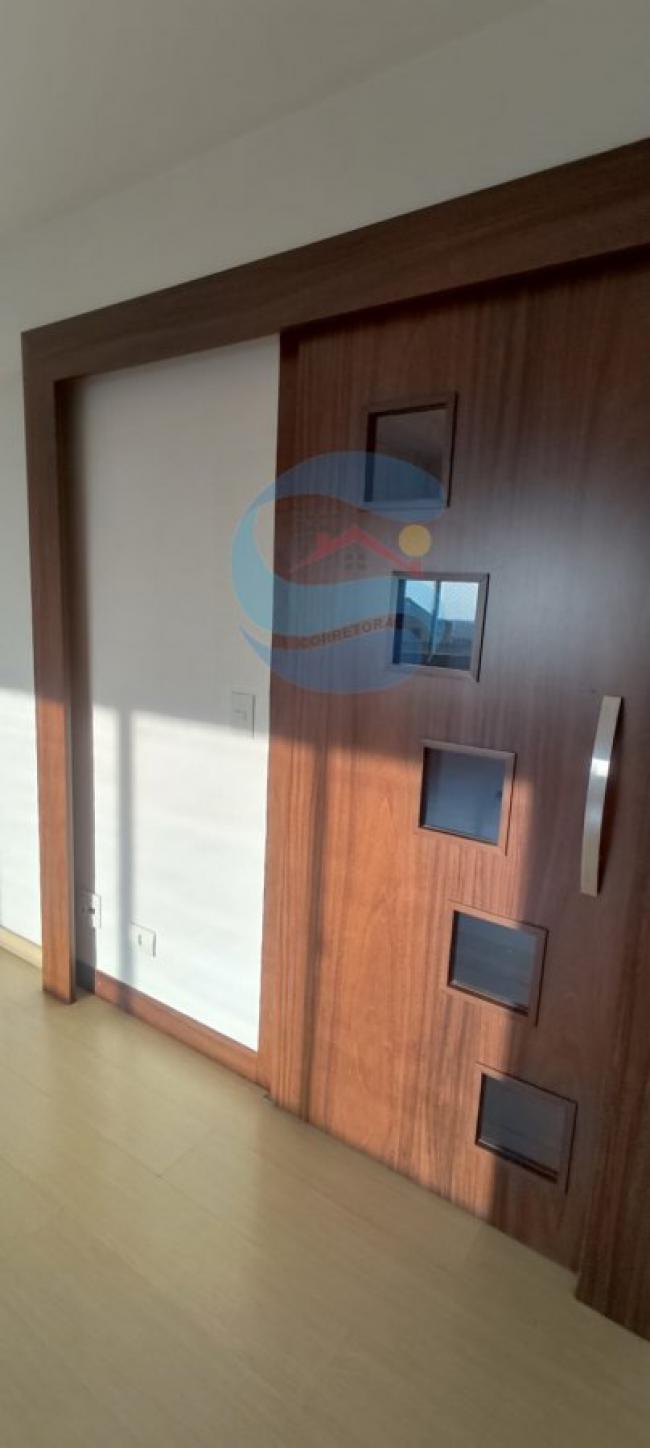 3 quartos, sendo uma suíte, sala e copa integrada, banheiro social, cozinha e área de serviço com banheiro.